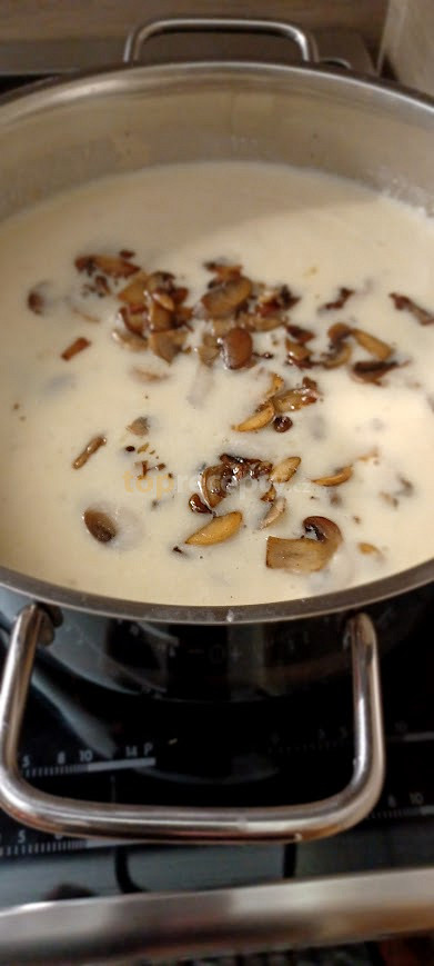 celer, česnek, olej, tymián, rozmarýn, cibule, brambory, vývar zeleninový, sůl, pepř mletý, droždí, smetana na vaření