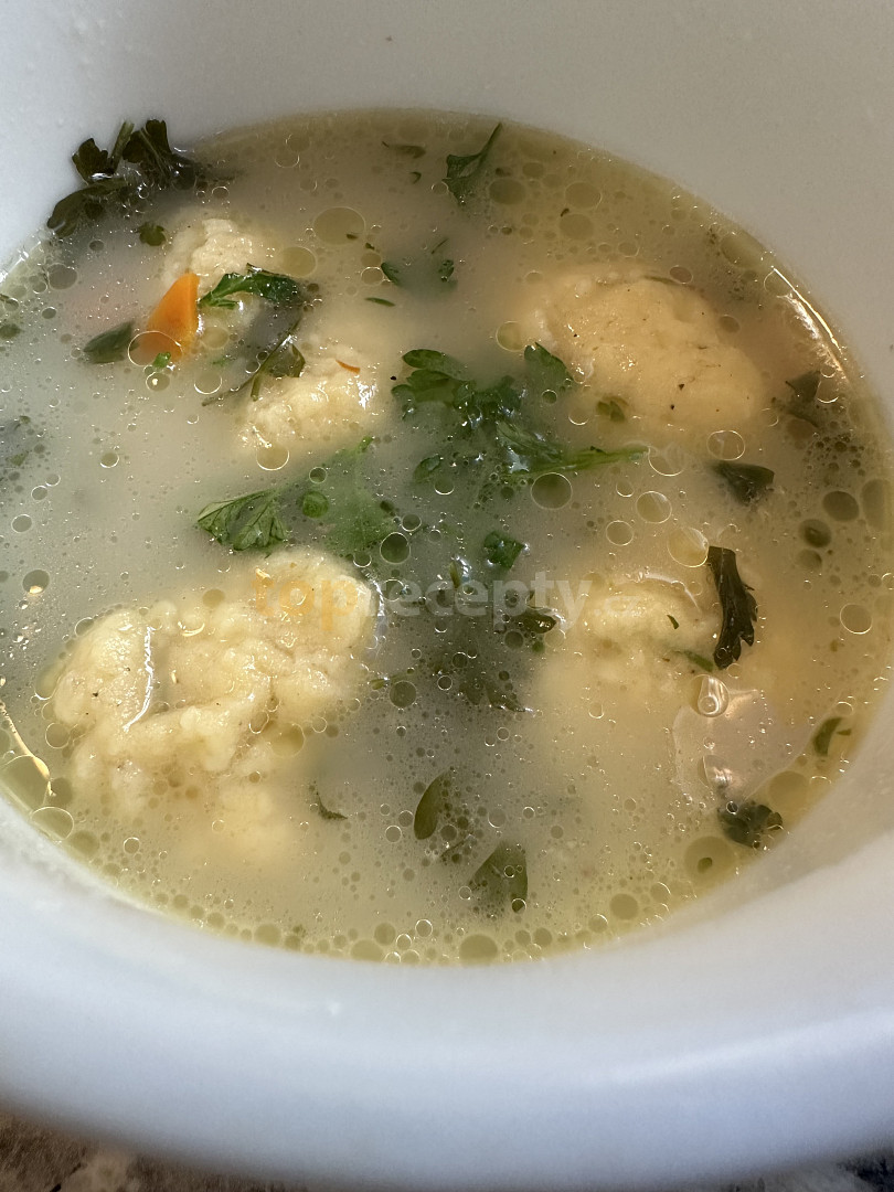 voda, petrželka zelená, libeček, sůl, květ muškátový, pepř, máslo, mouka hladká, kyška, mrkev, vejce, krupice, květ muškátový, sůl, pepř