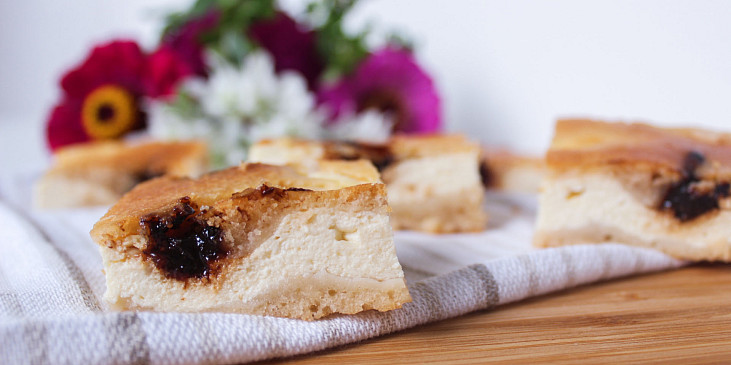vejce, cukr krystal, olej, mléko, mouka polohrubá, kypřící prášek do pečiva, tvaroh, vejce, cukr krupice, cukr vanilkový, mléko, povidla švestková, rum, skořice