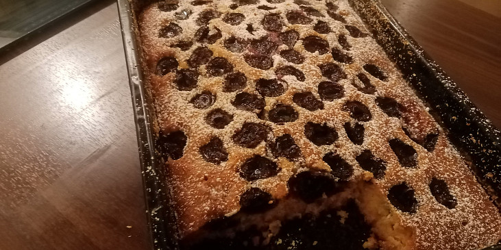 mouka polohrubá, cukr, cukr vanilkový, prášek do pečiva, zlatý klas, mléko, olej, vejce, kůra citronová, třešně, kokos, olej