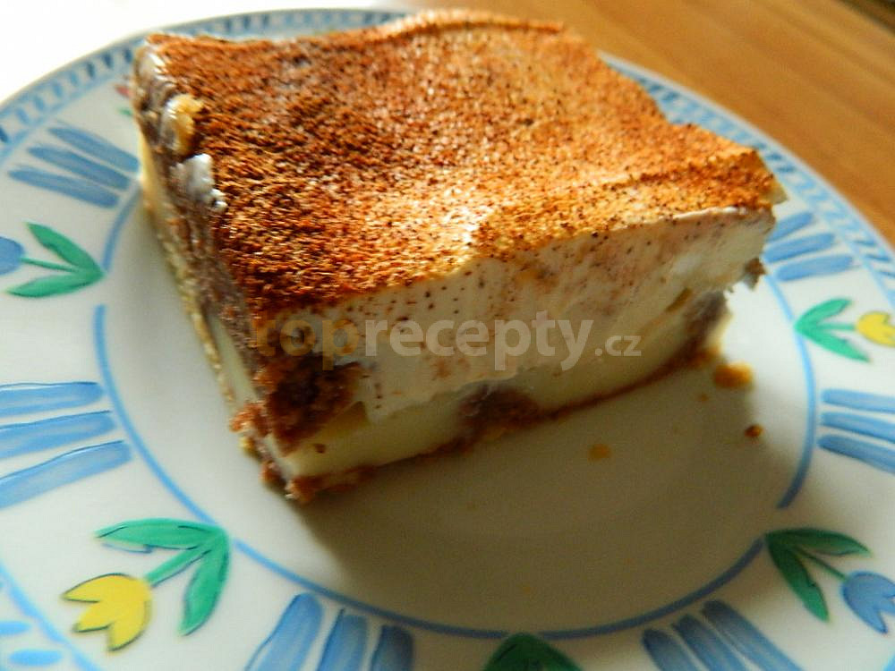 vejce, mouka hladká, cukr moučkový, voda, olej, kypřící prášek do pečiva, kakao, pudink vanilkový, mléko, cukr krystal, smetana zakysaná, cukr skořice, tuk, mouka hrubá