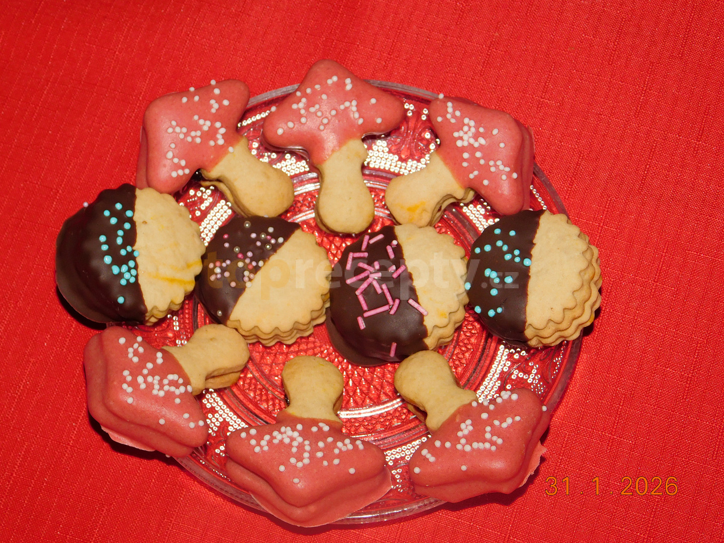 mouka hladká, pudink jahodový, cukr, tuk hera, vejce, kypřící prášek do pečiva, rum, marmeláda, poleva čokoládová, zdobení