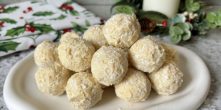 mléko kondenzované, smetana ke šlehání, oplatky, mouka mandlová, čokoláda bílá, sůl, čokoláda bílá, kokos strouhaný, oplatky, olej kokosový