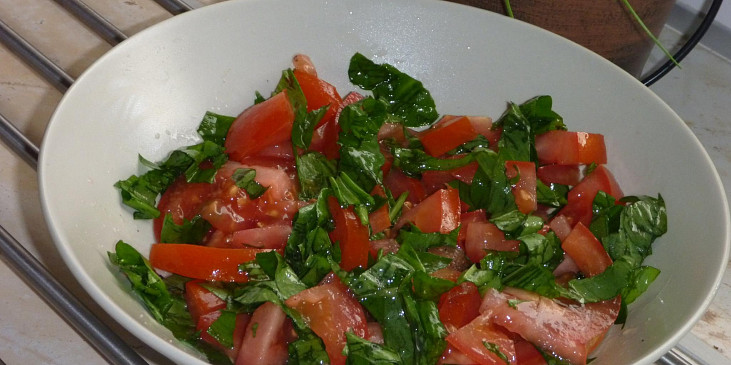 Fotografie k receptu Rajčatový salát s medvědím česnekem