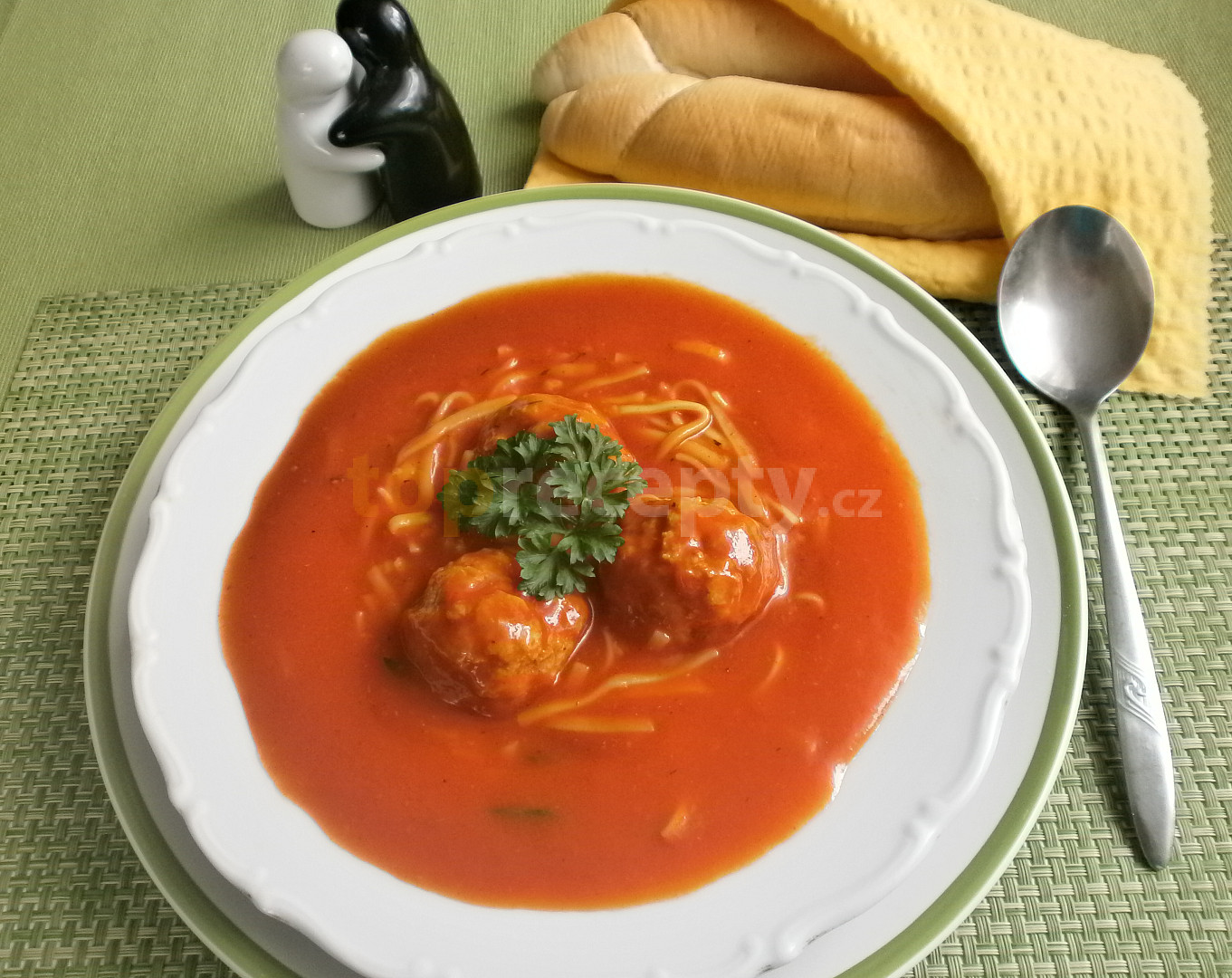 rajče, cibule, vývar zeleninový, olej, sůl, pepř mletý, tymián, bobkový list, koření nové koření, skořice, zavařenina rybízová, máslo, mouka hladká, maso hovězí mleté, rohlík, vejce, sůl, pepř mletý, mléko,