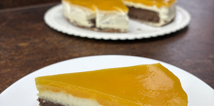 máslo, vejce, cukr krupice, pudink vanilkový, škrob bramborový, kypřící prášek do pečiva, kakao, sůl, mléko, smetana ke šlehání, cukr krupice, cukr vanilkový, želatina, mango, cukr moučkový, želatina