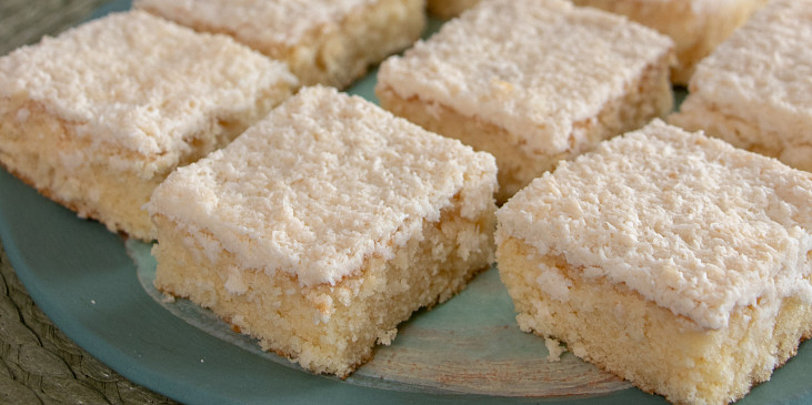 vejce, cukr moučkový, mléko, mouka polohrubá, olej, kypřící prášek do pečiva, tuk, mouka hrubá, kokos, cukr moučkový, smetana ke šlehání