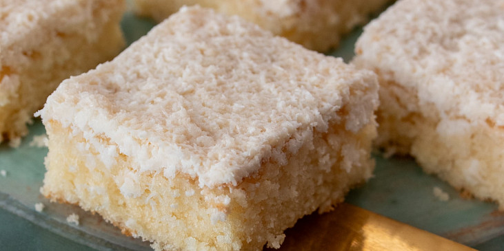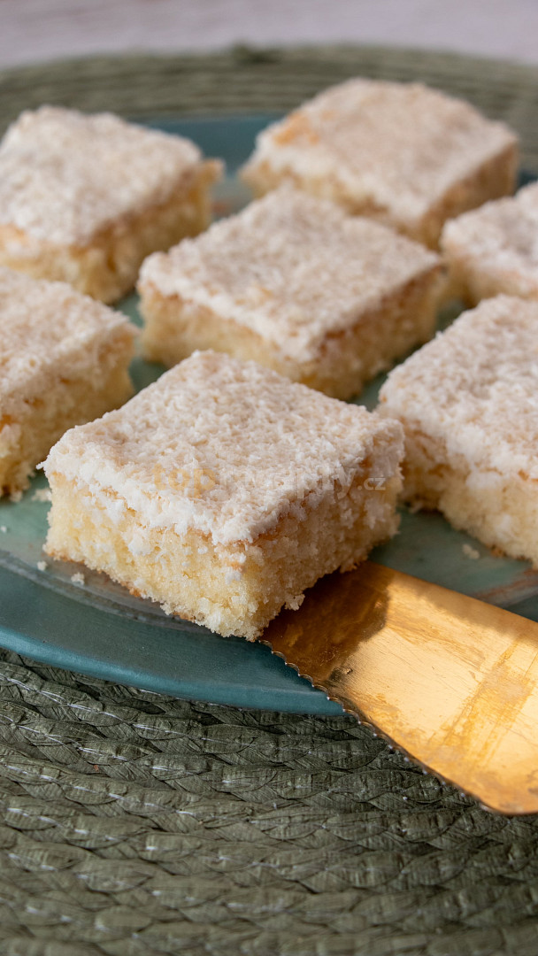 vejce, cukr moučkový, mléko, mouka polohrubá, olej, kypřící prášek do pečiva, tuk, mouka hrubá, kokos, cukr moučkový, smetana ke šlehání