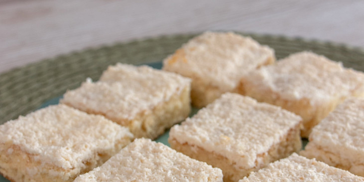 vejce, cukr moučkový, mléko, mouka polohrubá, olej, kypřící prášek do pečiva, tuk, mouka hrubá, kokos, cukr moučkový, smetana ke šlehání