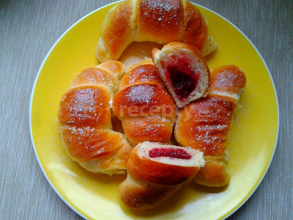 mouka hladká, droždí sušené, olej, mléko, cukr moučkový, cukr vanilkový, vejce, sůl, marmeláda malinová, vejce, cukr moučkový