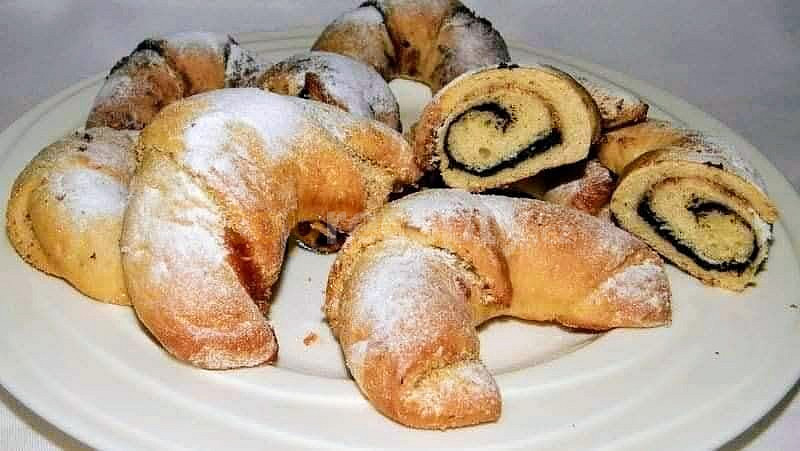 mouka hladká, máslo, cukr krupice, mléko, droždí čerstvé, vejce, sůl, mouka hladká, povidla švestková, kakao, cukr krupice, mléko, vejce, máslo, rum