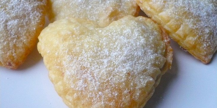 Tentokrát ve tvaru srdíček, tvořeno uzavírací formičkou, plněno marmeládou.