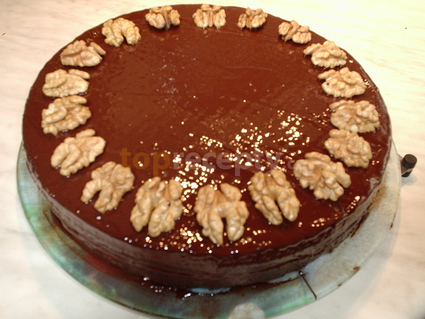 mouka hladká, cukr krystal, jablko, tuk, kakao, prášek do pečiva, vejce, marmeláda rybízová, poleva čokoládová, ořechy vlašské, mouka hrubá