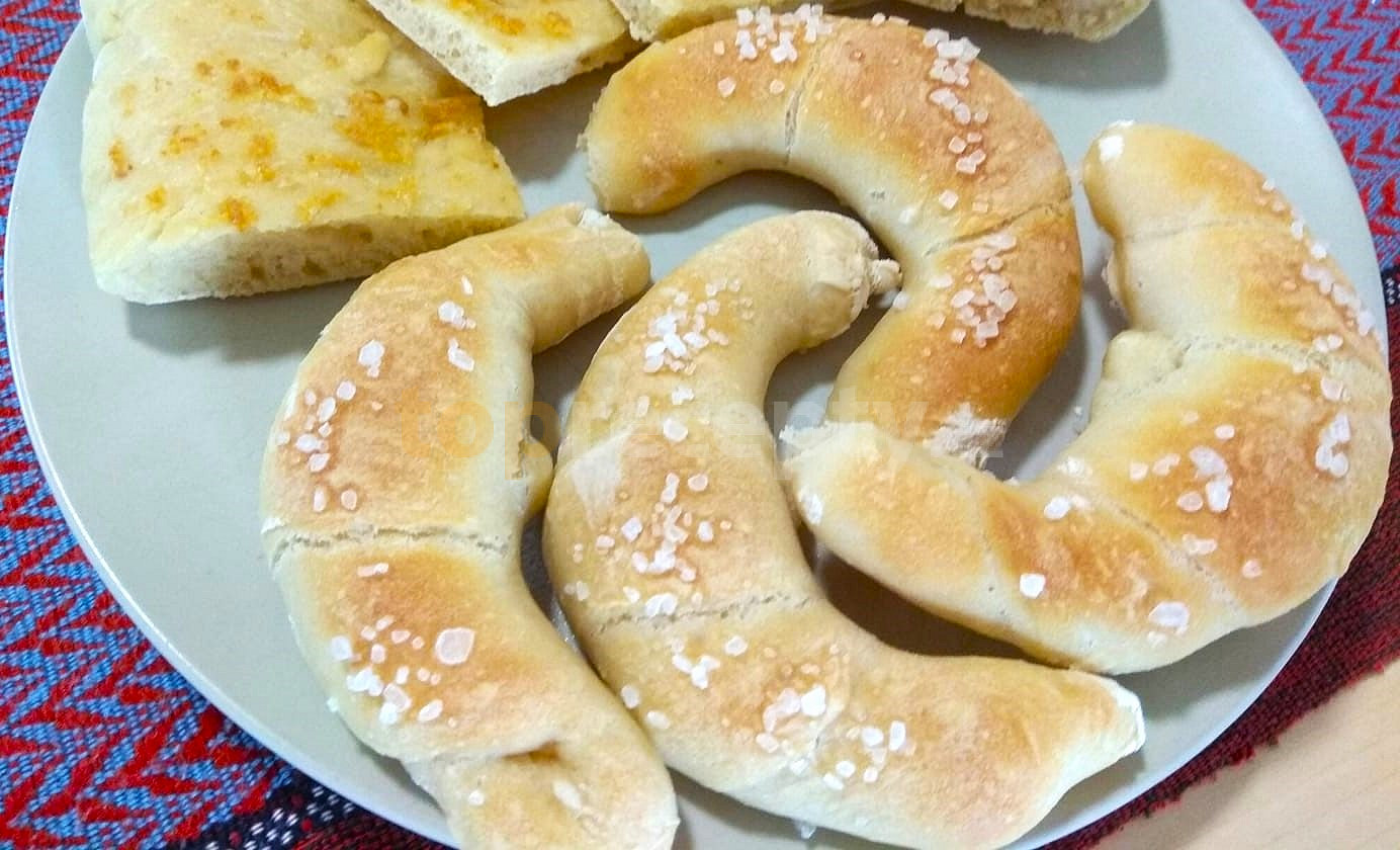 mouka hladká, sádlo, voda, cukr krupice, sůl, droždí čerstvé, vejce, sůl hrubá, kmín celý, mák, semínka sezamová, semínka dýňová, semínka slunečnicová, sýr strouhaný