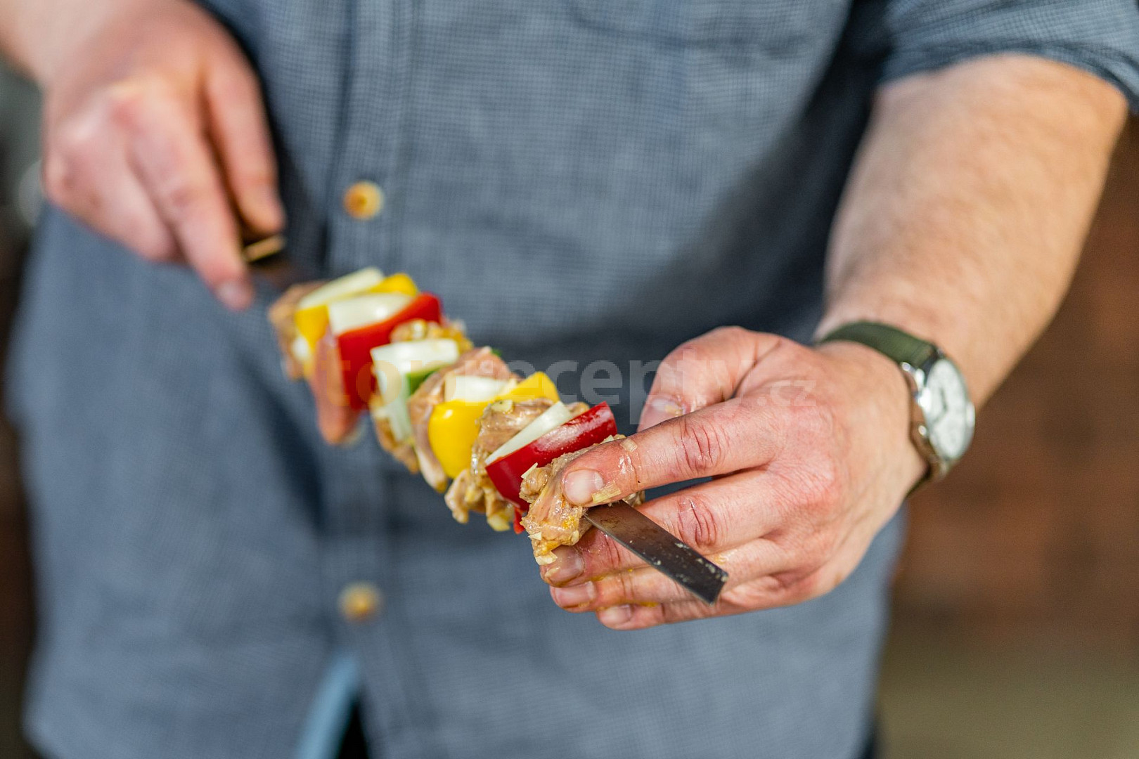 kýta jehněčí, cibule, paprika čerstvá červená, paprika čerstvá zelená, pepř mletý, sůl, šťáva citronová, kůra citronová, česnek, cibule, bobkový list, sůl hrubá, pepř mletý, olej olivový extra virgin, voda, máslo, šťáva citronová, pepř mletý, voda