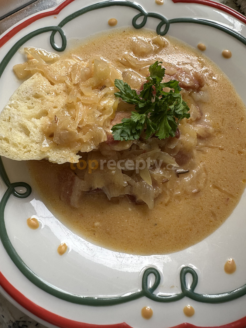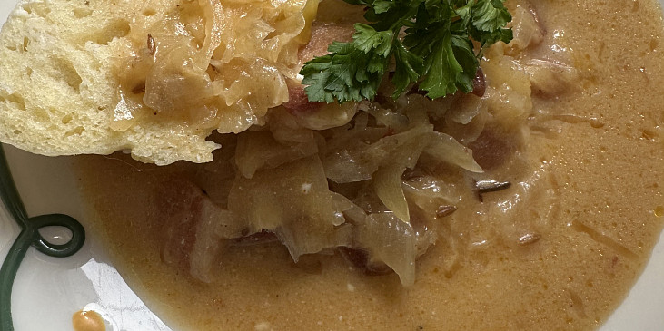 plecko vepřové, slanina anglická, olej, citron, cibule červená, zelí kysané, smetana zakysaná, paprika sušená pálivá, paprika sušená sladká, jíška, cukr, koření polévkové, pepř mletý, sůl