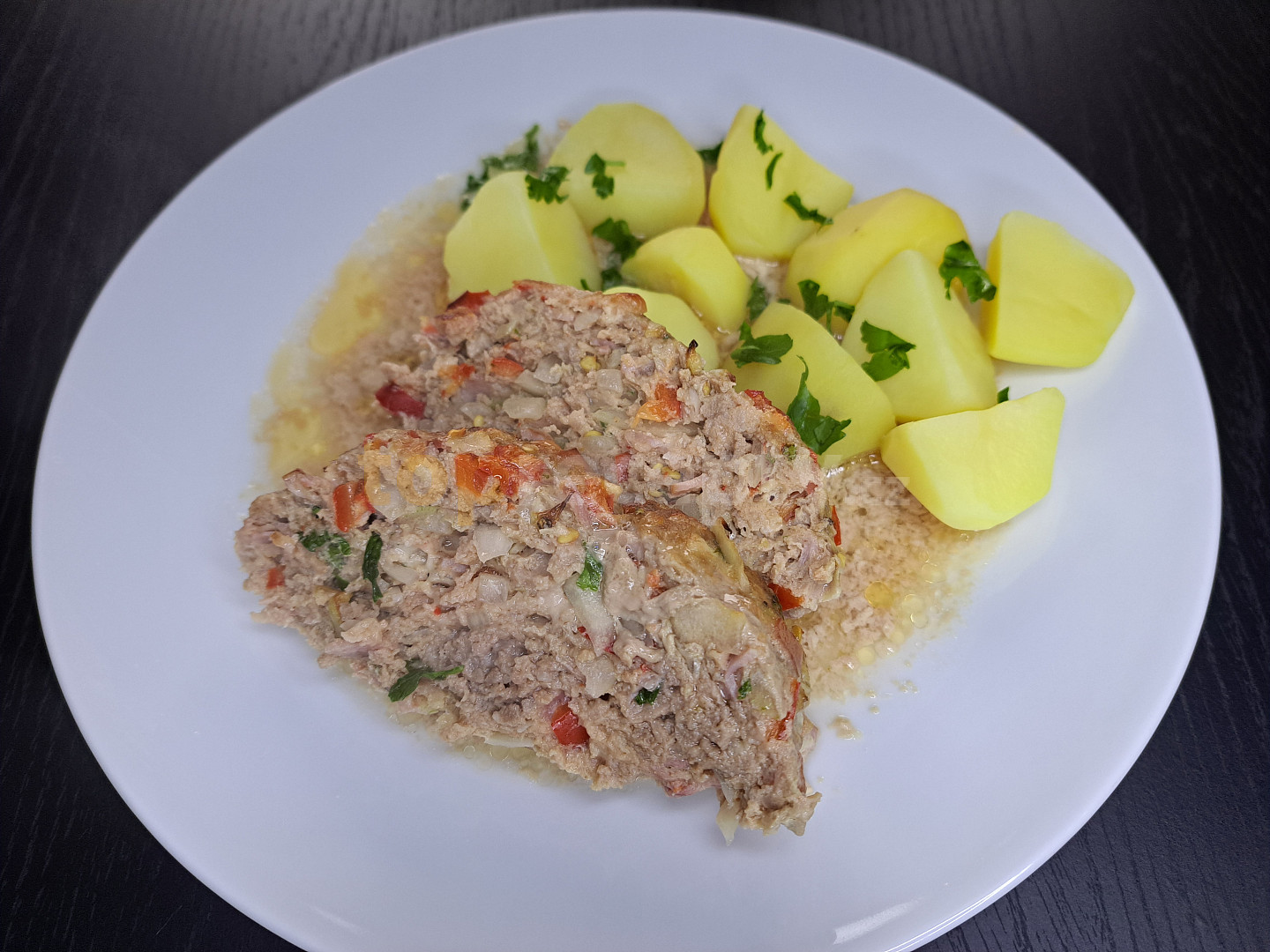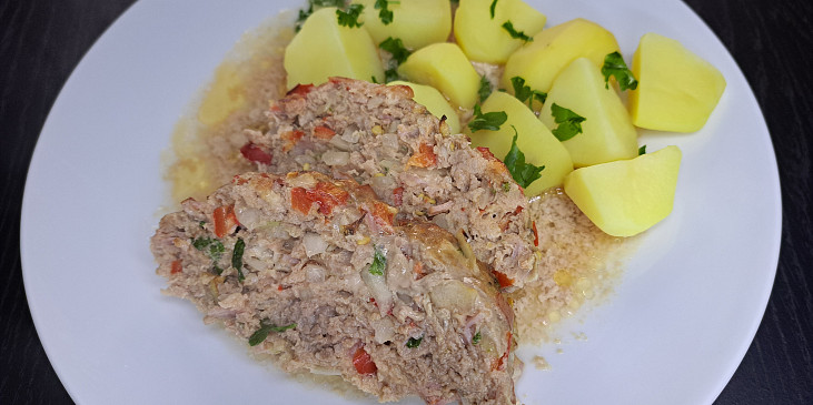 maso mleté, vejce, sýr mozzarella, kapie červená, cibule, feferonka, šunka, voda, petrželka, česnek sušený, pepř mletý, sůl