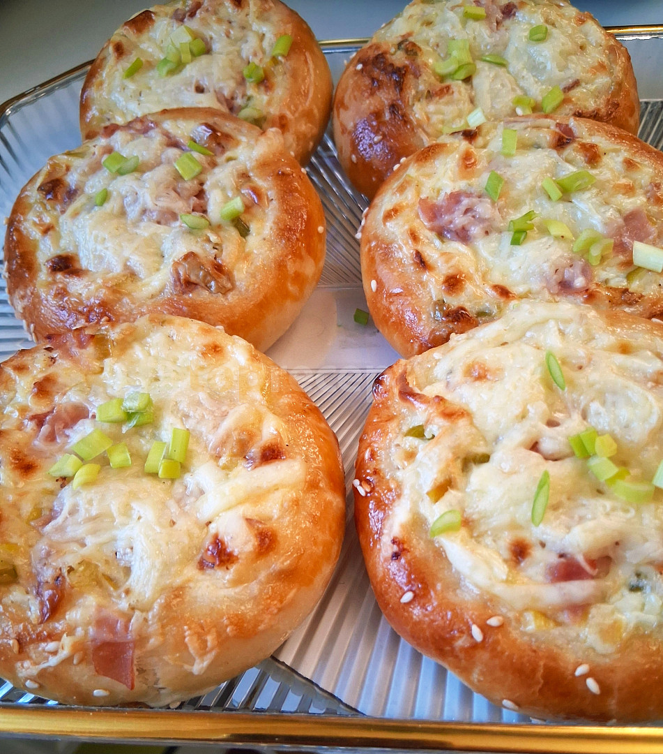 mouka hladká, žloutek, droždí sušené, olej, mléko, cukr, sůl, pomazánkové máslo, smetana zakysaná, pórek, máslo, salám vysočina, žloutek, sůl, pepř mletý, šunka, sýr nastrouhaný, vejce