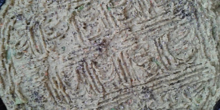 mouka hrubá sojová, mouka kukuřičná, mouka pohanková, čočka červená, rýže jasmínová, rýže, hrachové vločky, sušená zelenina, olej, ocet, kurkuma, zázvor mletý, celer řapíkatý
