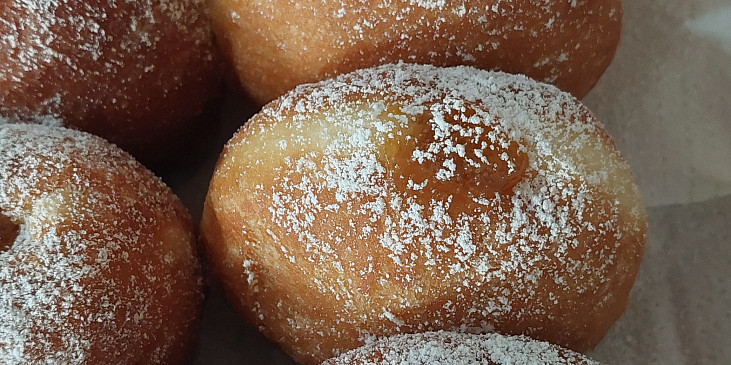 smetana ke šlehání, droždí čerstvé, mouka hladká, mouka polohrubá, žloutek, cukr krupice, mléko, povidla švestková, olej
