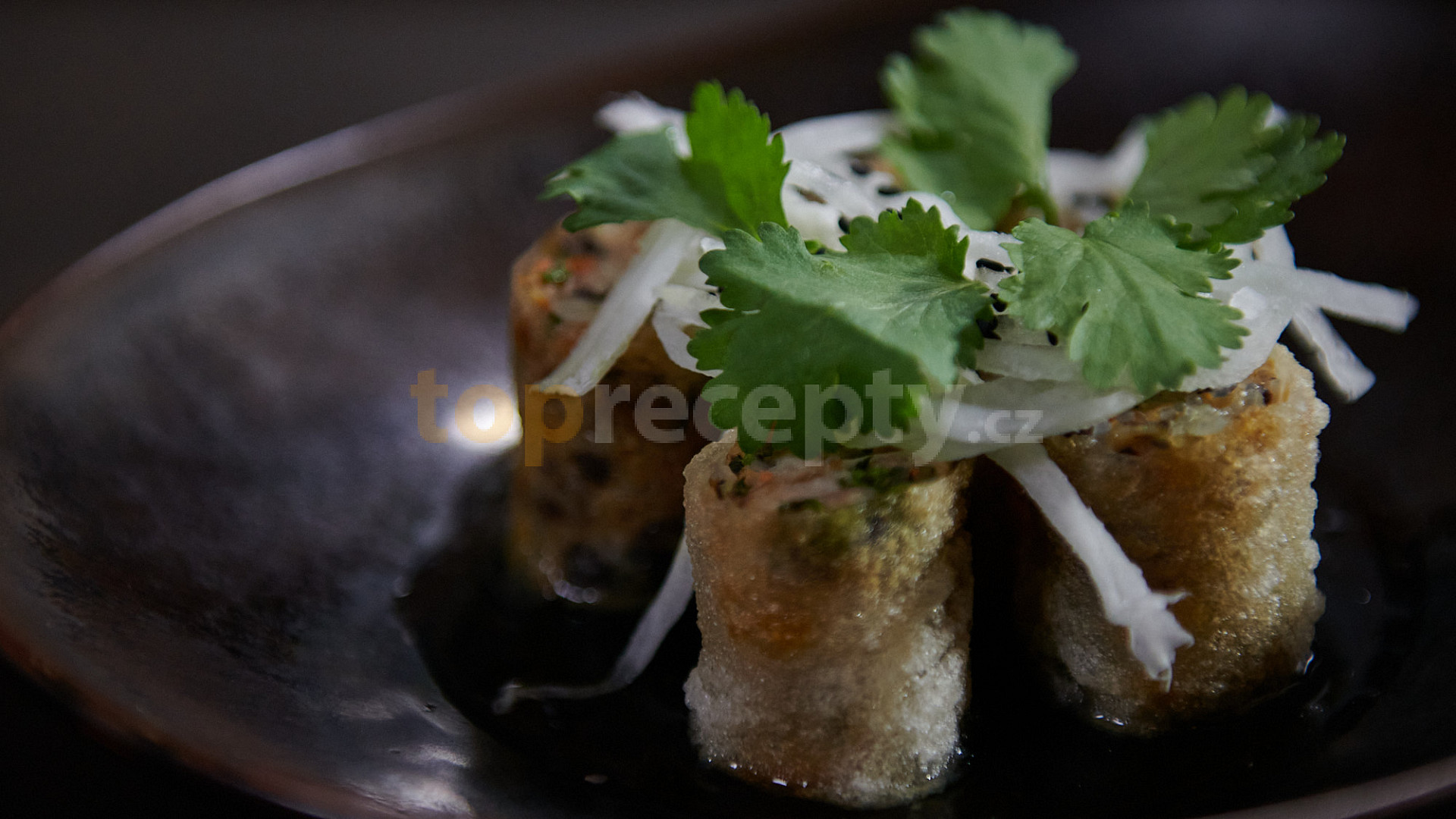bůček, cibule šalotka, koriandr, cibulka jarní, vejce, pepř mletý, sůl, cukr hnědý, nudle skleněné, houby shiitake, jidášovo ucho, mrkev, klíčky, krevety, voda, cukr hnědý, omáčka rybí, ocet, chilli paprika čerstvá, česnek, papír rýžový, olej, ředkev, semínka sezamová