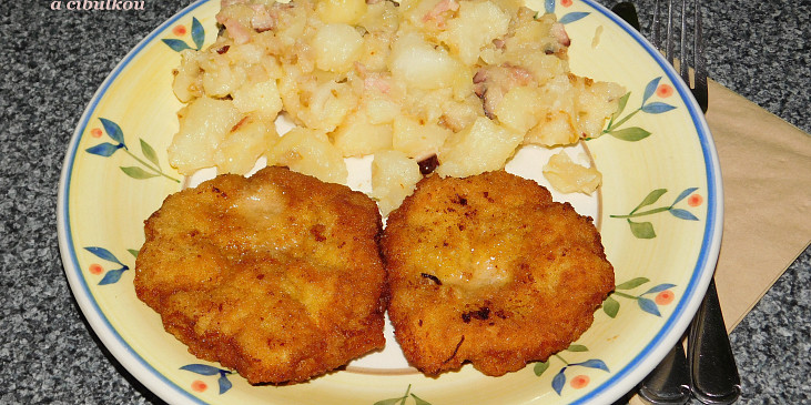 maso hovězí, maso vepřové, sýr tvrdý, nať petrželová, vejce, sůl, pepř mletý, mouka hladká, vejce, strouhanka, tuk na smažení