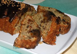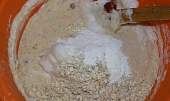 soja, cukr krystal, vejce, rozinky, ořechy sekané, kůra citronová, cukr vanilkový, vločky ovesné, strouhanka, prášek do pečiva, poleva čokoládová