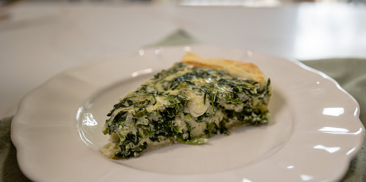 mouka hladká, sůl, máslo, voda, sýr smetanový, mléko plnotučné, vejce, listy špenátové mražené, sýr nastrouhaný, cibulka jarní, sůl, pepř mletý, máslo