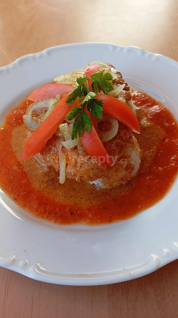 kotleta vepřová, sádlo, cibule červená, česnek, chilli paprika čerstvá, paprika čerstvá červená, paprika čerstvá žlutá, protlak rajčatový, vývar masový, cukr třtinový, sůl, pepř mletý, máslo, mouka hladká