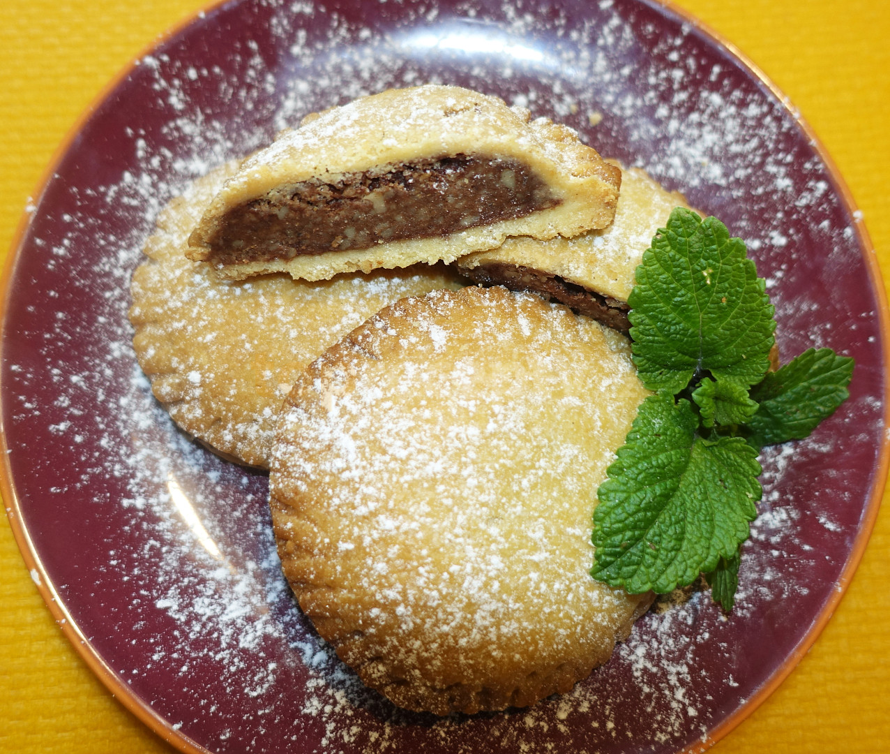 mouka hladká, máslo, cukr moučkový, žloutek, cukr vanilkový, kůra citronová, skořice mletá, nutella, ořechy vlašské, skořice mletá