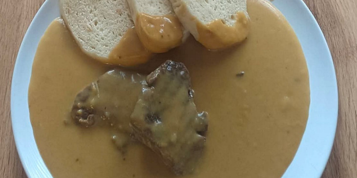 maso hovězí, mrkev, cibule, celer, petržel, koření nové koření, pepř červený, bobkový list, sůl, pepř mletý, smetana, bujón zeleninový, špek, šťáva citronová,