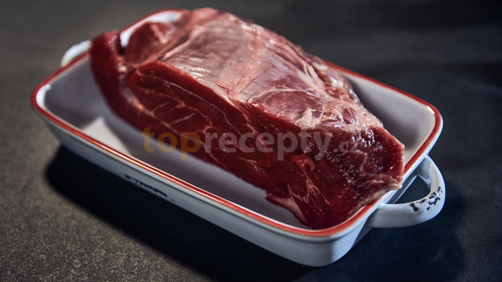 zeleninový základ, maso hovězí, špek, koření divoké, ocet, máslo, smetana ke šlehání, vývar masový, hořčice plnotučná, brusinky, cukr krupice, sádlo, šťáva citronová, sůl, pepř mletý
