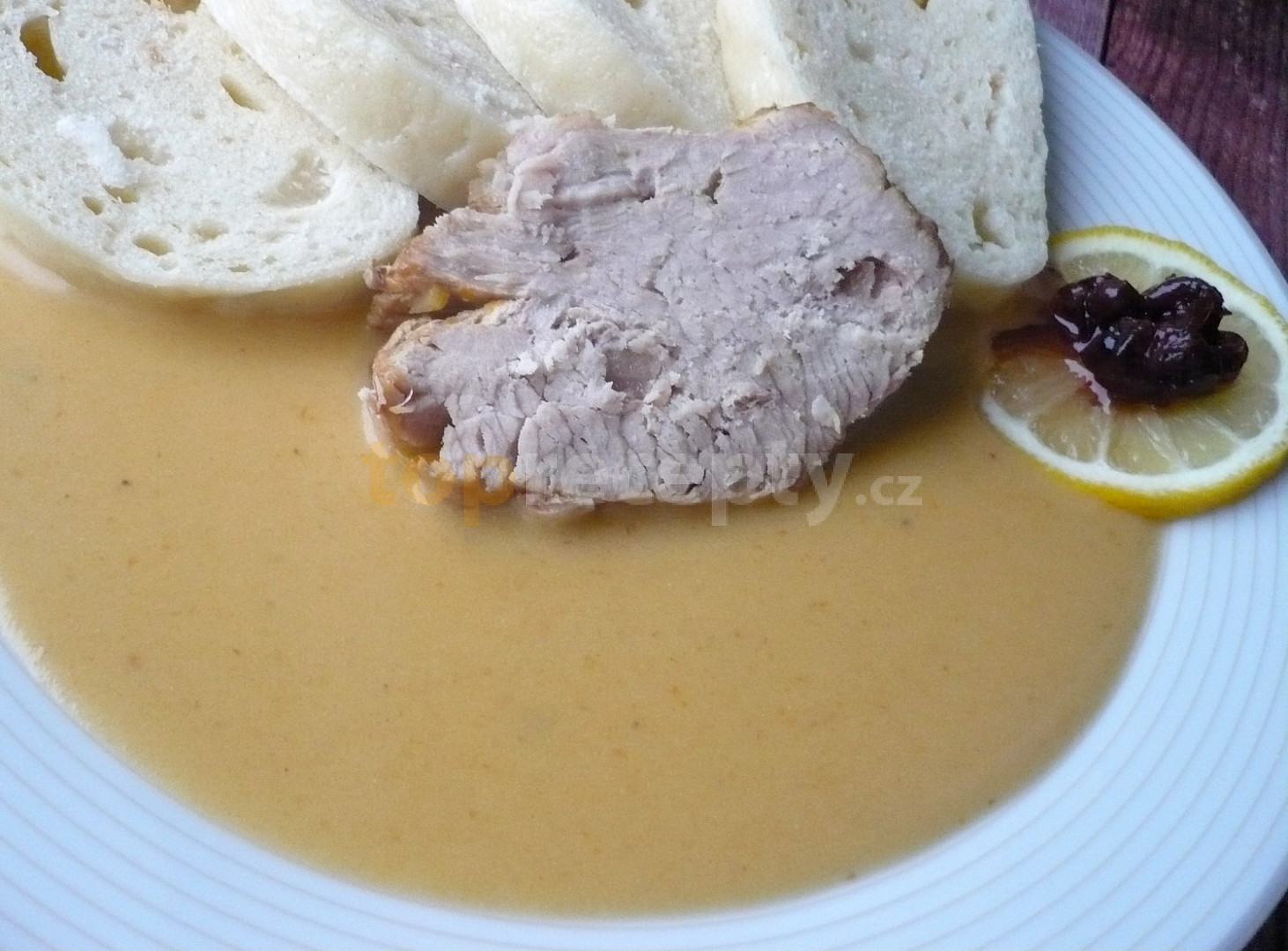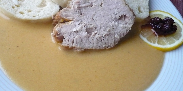 plec vepřová, špek, mrkev, petrželka kořenová, celer, cukr krupice, ocet, vývar masový, smetana ke šlehání, máslo, olej, sůl, pepř černý, koření nové koření, bobkový list, mouka hladká, šťáva citronová, kompot brusinkový