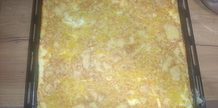 mouka polohrubá, cukr krystal, kypřící prášek do pečiva, cukr vanilkový, tvaroh měkký, vejce, cukr krystal, cukr vanilkový, mléko, tuk hera