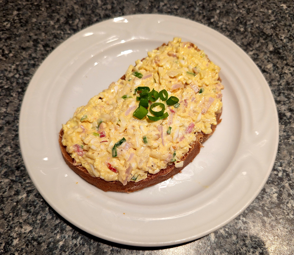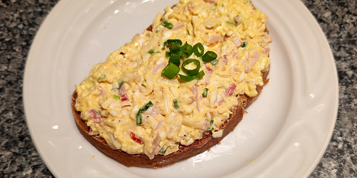 sýr gouda, salám herkules, pečeně vepřová, sýr hermelín, vejce, cibule, pórek, hořčice plnotučná, majonéza, lák z okurek, sůl, pepř mletý