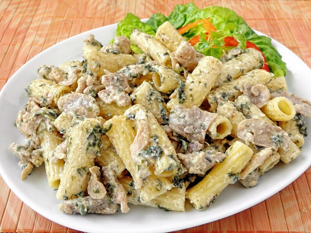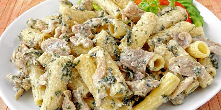 Kategorie a štítky receptu Těstoviny s kuřecím stehenním masem, žampiony a špenátem