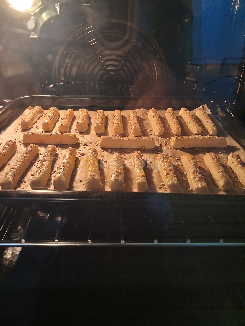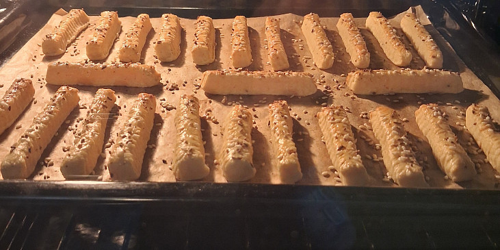 mouka hladká, sýr uzený, máslo, tuk hera, sádlo, smetana ke šlehání, česnek, sůl, koření grilovací, kypřící prášek do pečiva, žloutek, vejce, semínka sezamová, kmín drcený