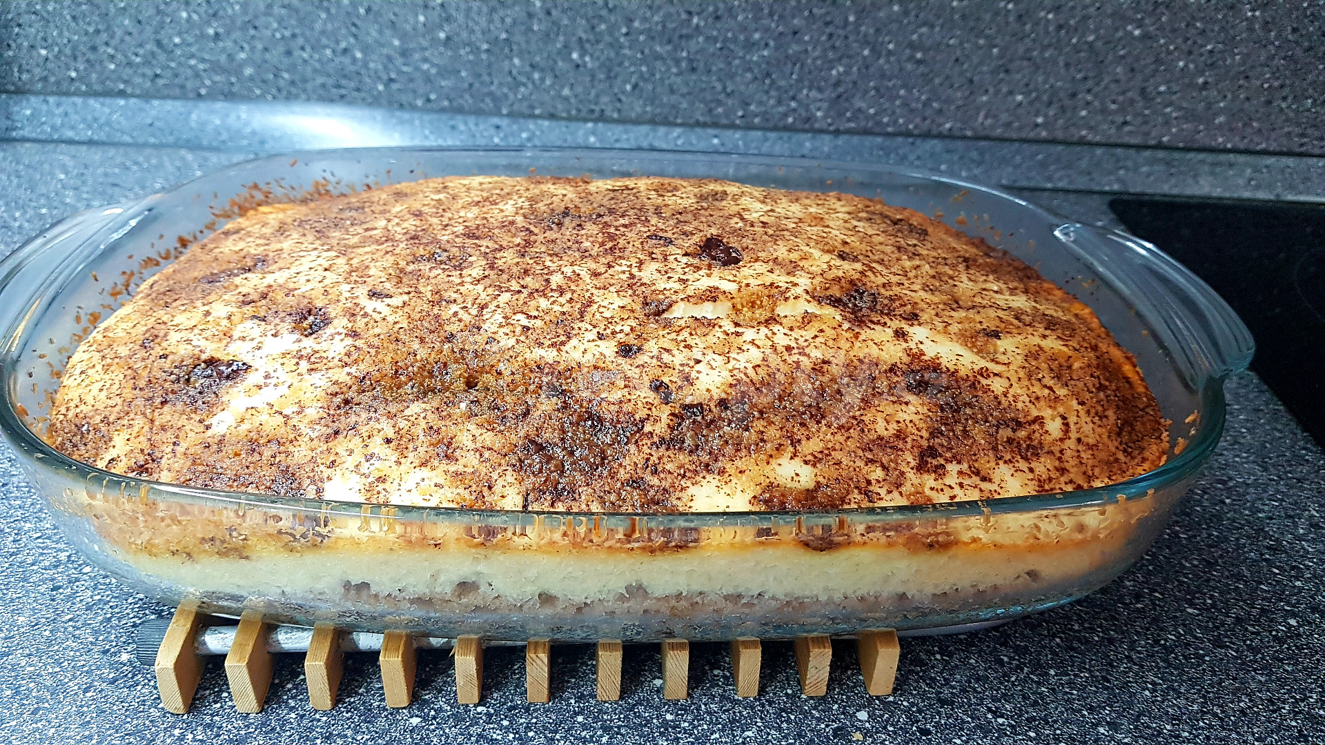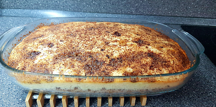 mouka polohrubá, vejce, mléko, olej, cukr krupice, cukr vanilkový, kypřící prášek do pečiva, kakao, tvaroh ve vaničce, vejce, cukr krupice, cukr vanilkový, pudink vanilkový, čokoláda margot