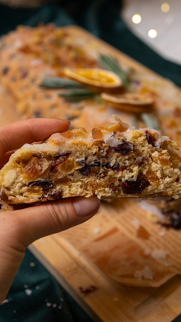 tvaroh, máslo, cukr krupice, vejce, podmáslí, mouka hladká, kypřící prášek do pečiva, rozinky, brusinky sušené, meruňky sušené, mandle, citron, sůl, mletý anýz, cukr moučkový, šťáva citronová, máslo, cukr moučkový, cukr vanilkový, ovoce kandované