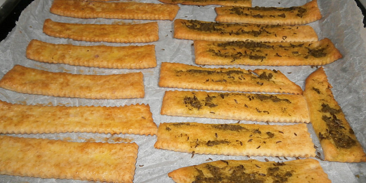 mouka špaldová hrubá, jogurt bílý, sýr nastrouhaný, sádlo, kypřící prášek do pečiva, česnek sušený, sůl, vejce, kmín celý, pesto bazalkové