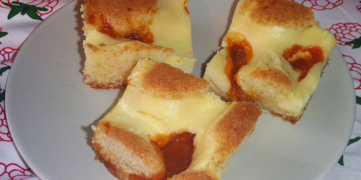 mouka hladká, cukr, mléko, olej, vejce, prášek do pečiva, tvaroh ve vaničce, cukr, cukr vanilkový, pudink vanilkový, vejce, tvaroh, povidla švestková