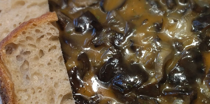 houby václavky, cibule, olej, paprika sušená sladká, mouka hladká, kmín drcený, feferonky sušené, sůl, vývar masový, cibule