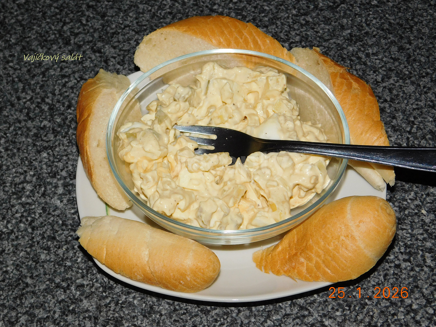 vejce, brambory, okurky sterilované, cibule, majonéza, sůl, pepř bílý mletý, hořčice, omáčka worcesterová, šťáva citronová, cukr