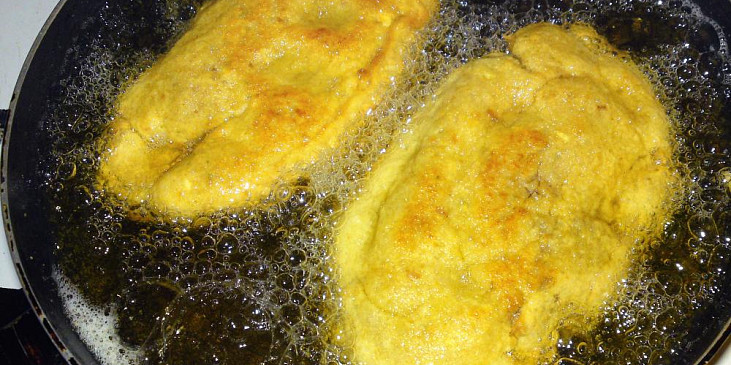 kýta vepřová, špekáček, sýr eidam uzený, cibule, vejce, mléko, mouka hladká, strouhanka, sůl, pepř mletý, olej