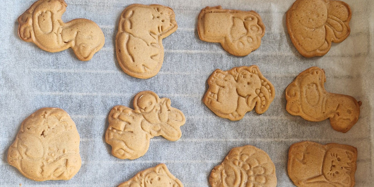 mouka hladká, cukr moučkový, med, tuk hera, vejce, soda jedlá, šťáva citronová, koření do perníku, vejce, poleva bílková