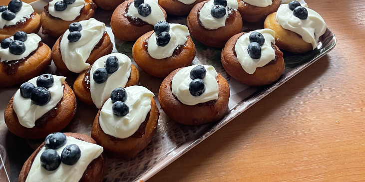 mouka hladká, mouka polohrubá, cukr krupice, mléko, droždí, vejce, máslo, kůra citronová, sůl, olej, smetana kysaná, šlehačka, marmeláda rybízová, povidla švestková
