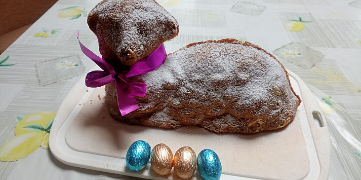 vejce, mouka hladká, pudink vanilkový, cukr moučkový, cukr vanilkový, kypřící prášek do pečiva, olej, likér vaječný, ovoce kandované, rozinky, poleva čokoládová, tuk, mouka hrubá