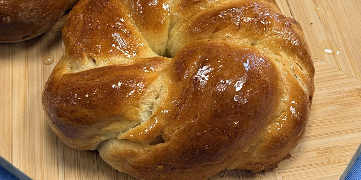 mouka hladká, cukr krupice, sůl, droždí čerstvé, mléko plnotučné, vejce, máslo, citron, vanilka, vejce, voda, cukr krupice,
