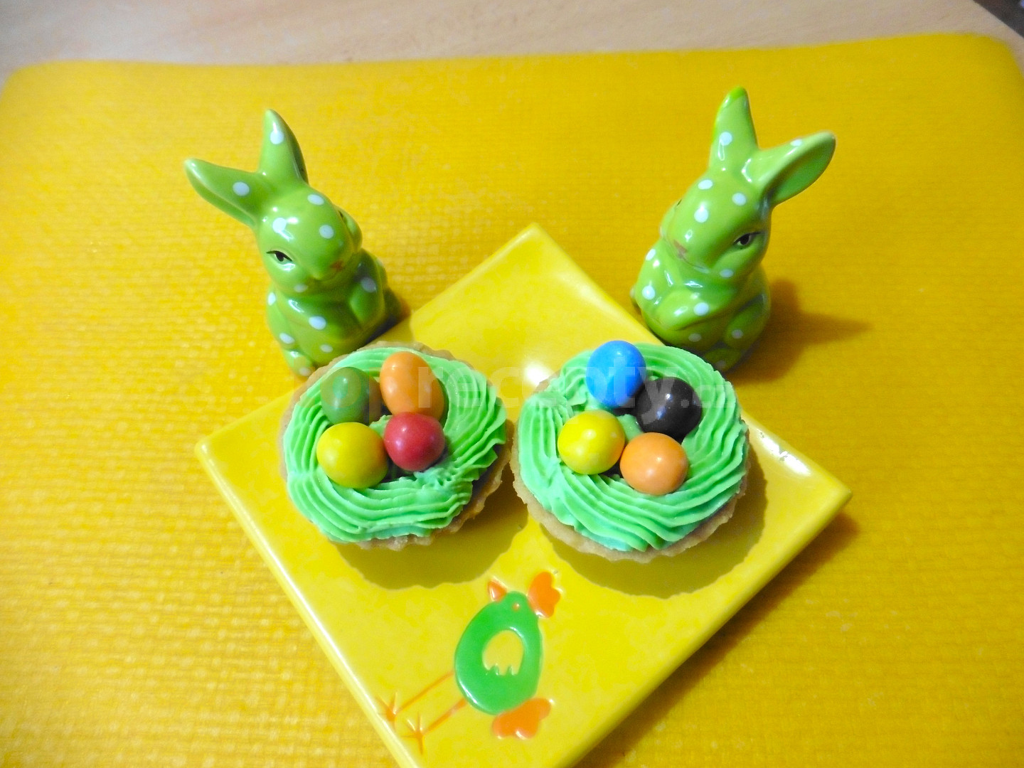 mouka hladká, máslo, cukr moučkový, žloutek, kůra citronová, vanilka, tvaroh ve vaničce, pudink vanilkový bez vaření, cukr moučkový, vanilka mletá, potravinářské barvivo gelové, vejce