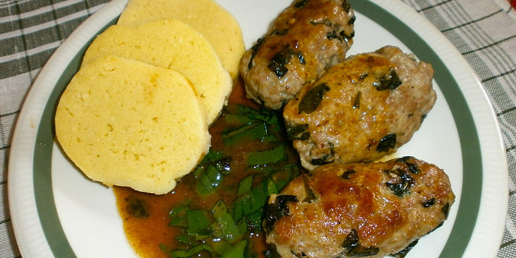 maso vepřové mleté, solamyl, mouka hladká, vejce, česnek mědvědí, vývar masový, sádlo, mouka polohrubá, sůl, pepř mletý, kmín drcený